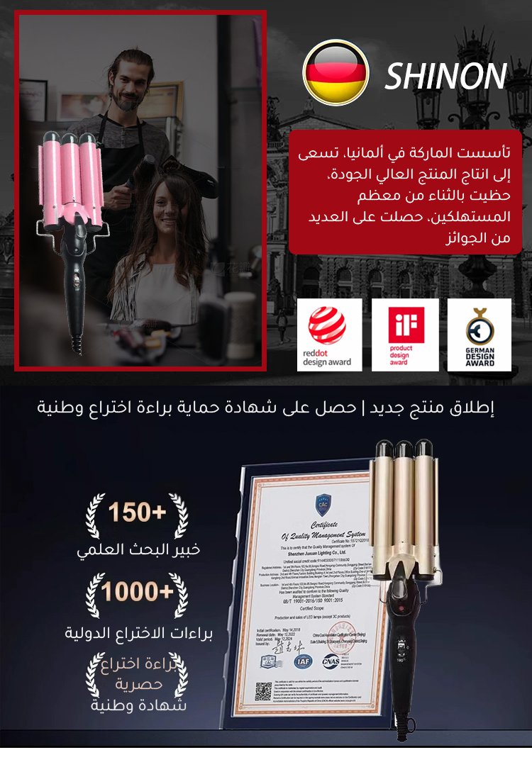 مكواة تجعيد شعر ثلاثية الأمواج (الإطلالة تدوم طوال يوم)
