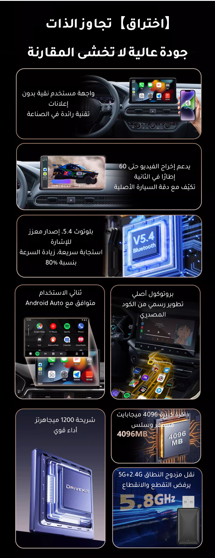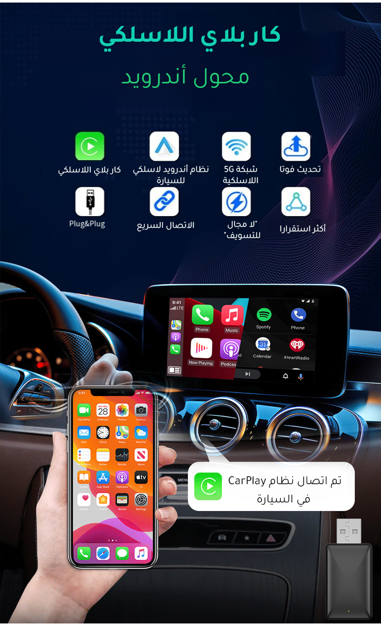 محول كار بلاي الذكي المطوّر للسيارة